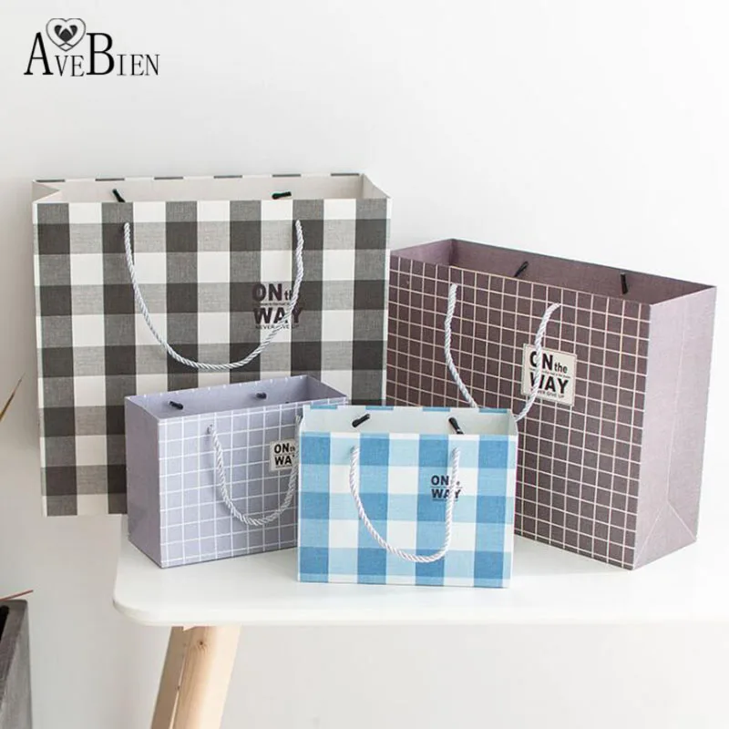 Cheap AVEBIEN Simple Style Plaid Gift Bag Shopping Mall Handbag 10pcs Wedding Favors and Gifts Baby Showe